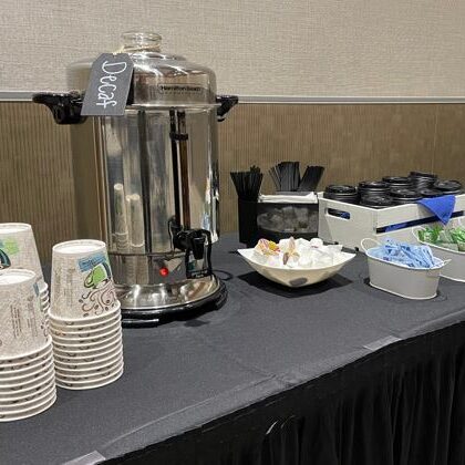 Snacks are offered when requested for an event. We can provide fresh fruits & trail mix, pastries, and an assortment of pre-packaged snacks.